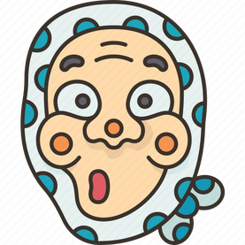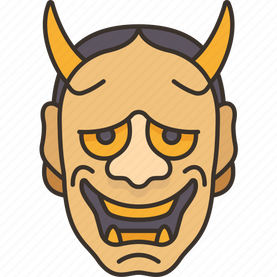 Her horns show, which means her black mask is worn. An omen, mischief to be done. Haunting anyone near her passively with her many floating masks and many hung on walls to spook people or even take their sweets n' treats. Bow to her and she will speak. Gift her something and the haunting will stop. Make her a mask and she will gift you a mask of protection.