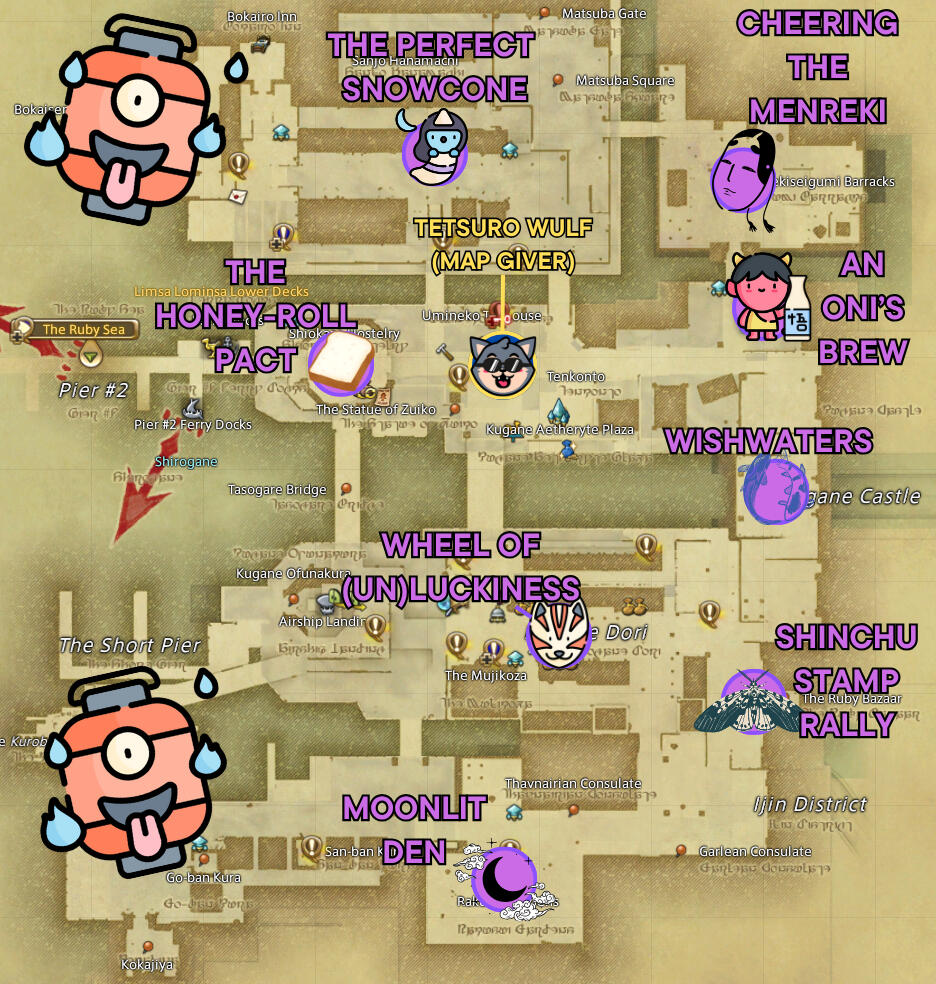 An oni has appeared within Kugane! One with various brews beside him, two full tables worth. Each of them just as unique as the other. He's looking for taste testers! Beware, you may leave a different person than what you were before taking a sip~